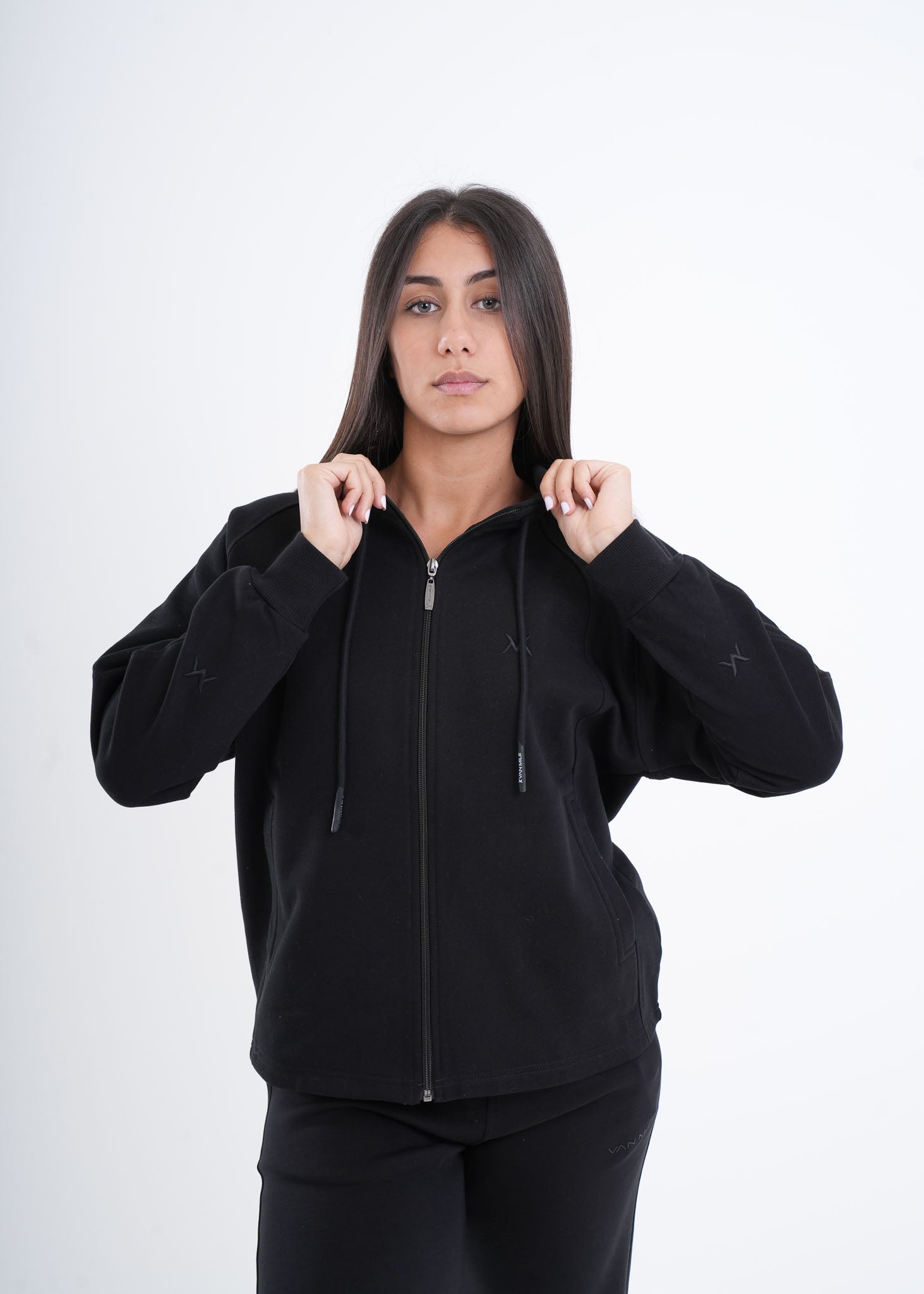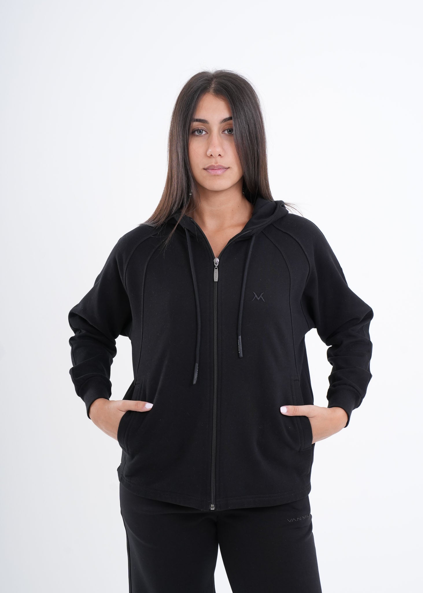 The VNML  Zip-Through Hoodie is crafted from premium cotton for a smooth, breathable feel with just the right weight. Featuring embroidered VAN MILE logos on both forearms and the chest, it brings subtle sophistication to a timeless everyday essential. Perfect for layering, lounging, or heading out in effortless style.